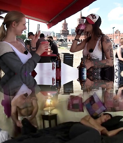Horny ash-blonde and cute brunette lesbian pussy fingering