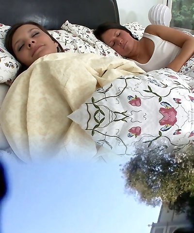 Frisky brunettes wake up together and start fucking in bed