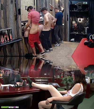 Lesbian beauty Reena involved six hotties in girl-girl orgy