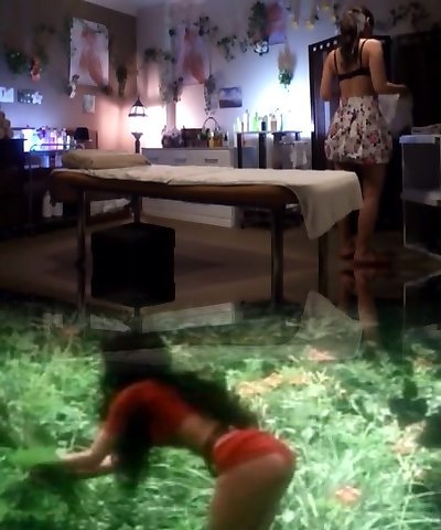Massage Rooms Big tits good-sized ass lesbian scissoring orgasm
