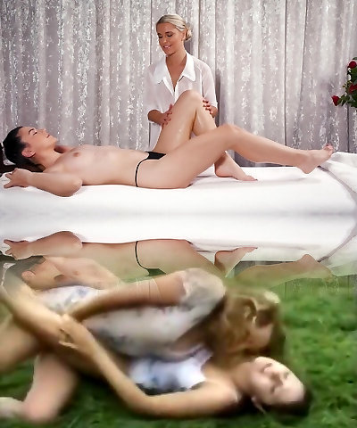 At the spa she gets an oily massage and some hot lesbian fuck-fest