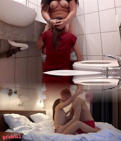 Cute amateur lesbians make love in the toilets